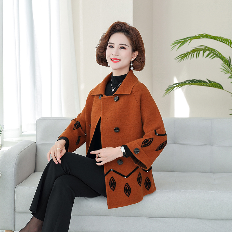 Mantel tebal hangat untuk ibu, kardigan rajut gaya Barat usia sedang dan tua 2023
