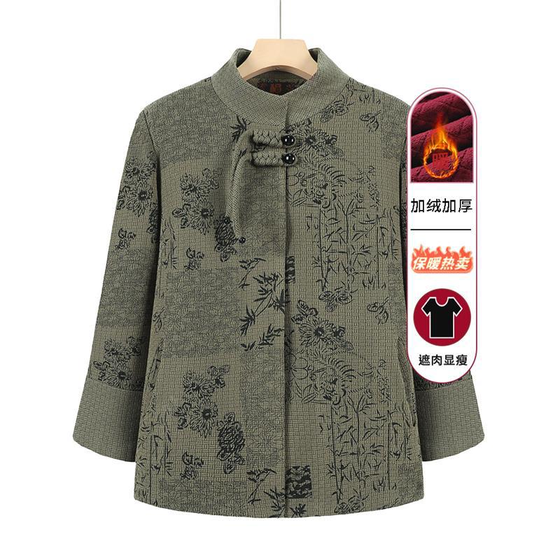 Pakaian Wanita Setengah Baya dan Wanita Usia Lanjut Jaket Model Baru Musim Gugur Baju Atasan Nenek 80 Tahun 60-70 Tahun Baju Kerah Tegak Ibu Model Musim Semi Musim Gugur