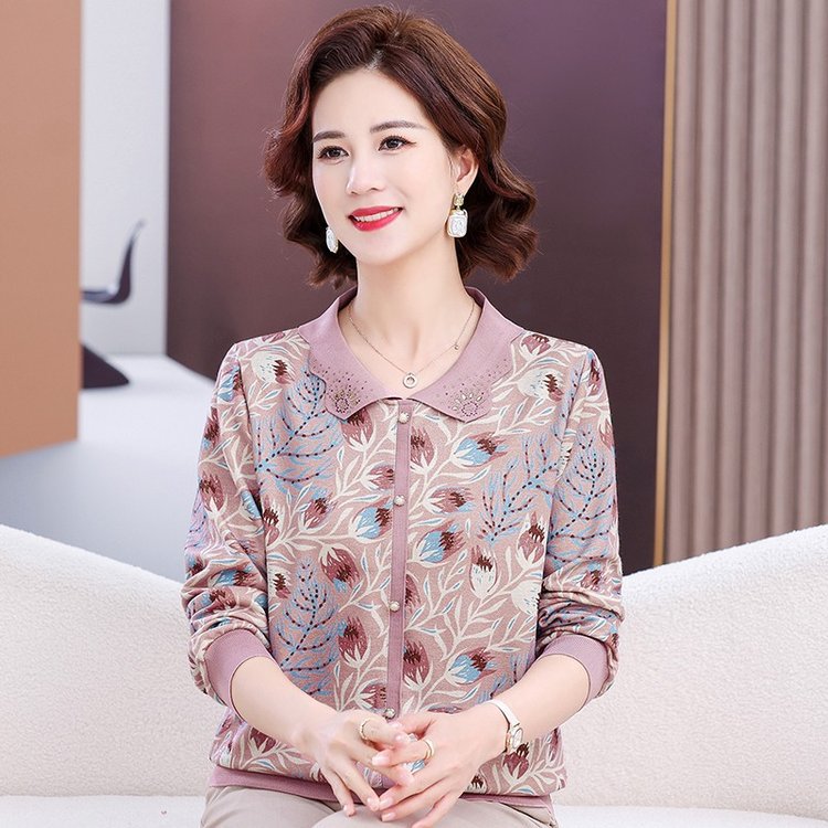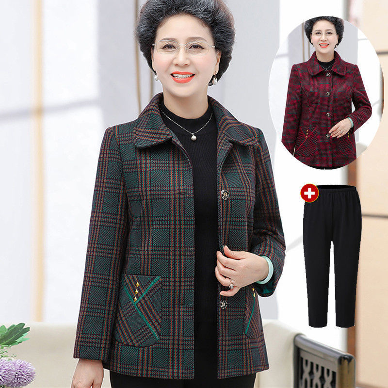 Pakaian musim semi wanita paruh baya dan lansia, mantel musim semi musim gugur nenek, pakaian ibu 70 usia 60 tahun, setelan wanita tua lengan panjang