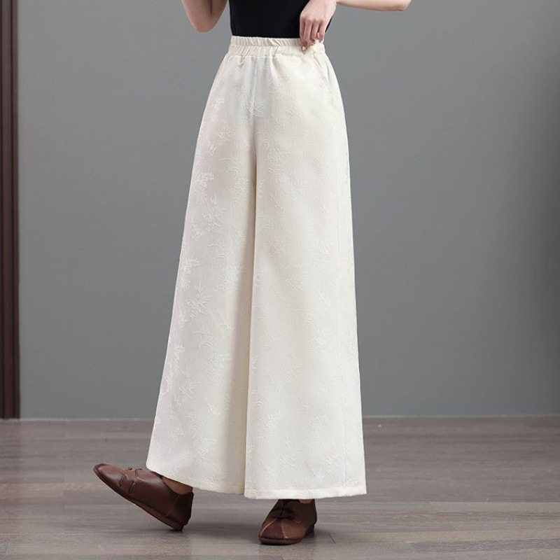Pakaian Ibu Celana Kaki Lebar Jacquard Nasional Retro Gaya Nasional Seni Model Baru Celana Panjang Longgar Bordir Musim Semi Celana Kasual Terlihat Langsing