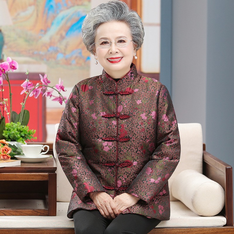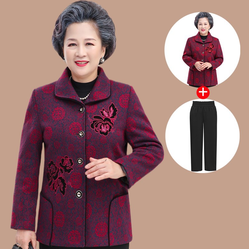 Mantel musim gugur wanita nenek paruh baya dan lansia, pakaian ibu wol musim semi dan musim gugur, setelan Tang perjamuan pernikahan wanita tua