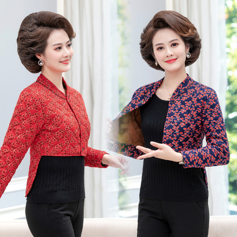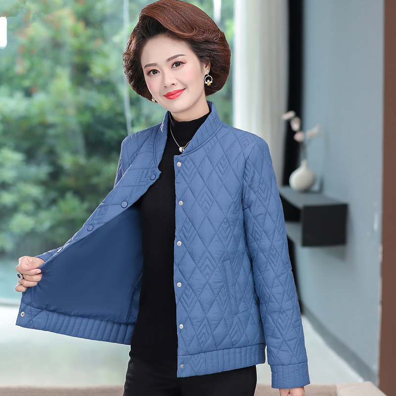 Mantel katun empuk kasual untuk ibu, mantel musim gugur gaya Barat longgar kasual usia sedang dan orang tua, pakaian wanita musim gugur dan musim dingin ringan 2022