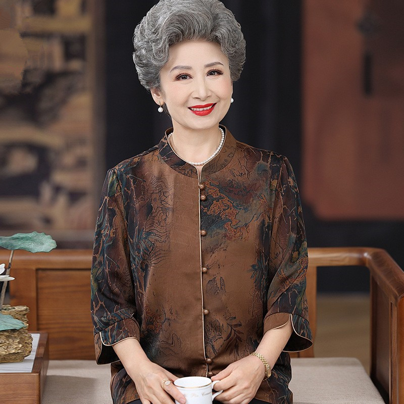 Kaus musim panas nenek 70 tahun wanita kelas atas pakaian ibu setelan kemeja musim panas tua lengan setengah wanita