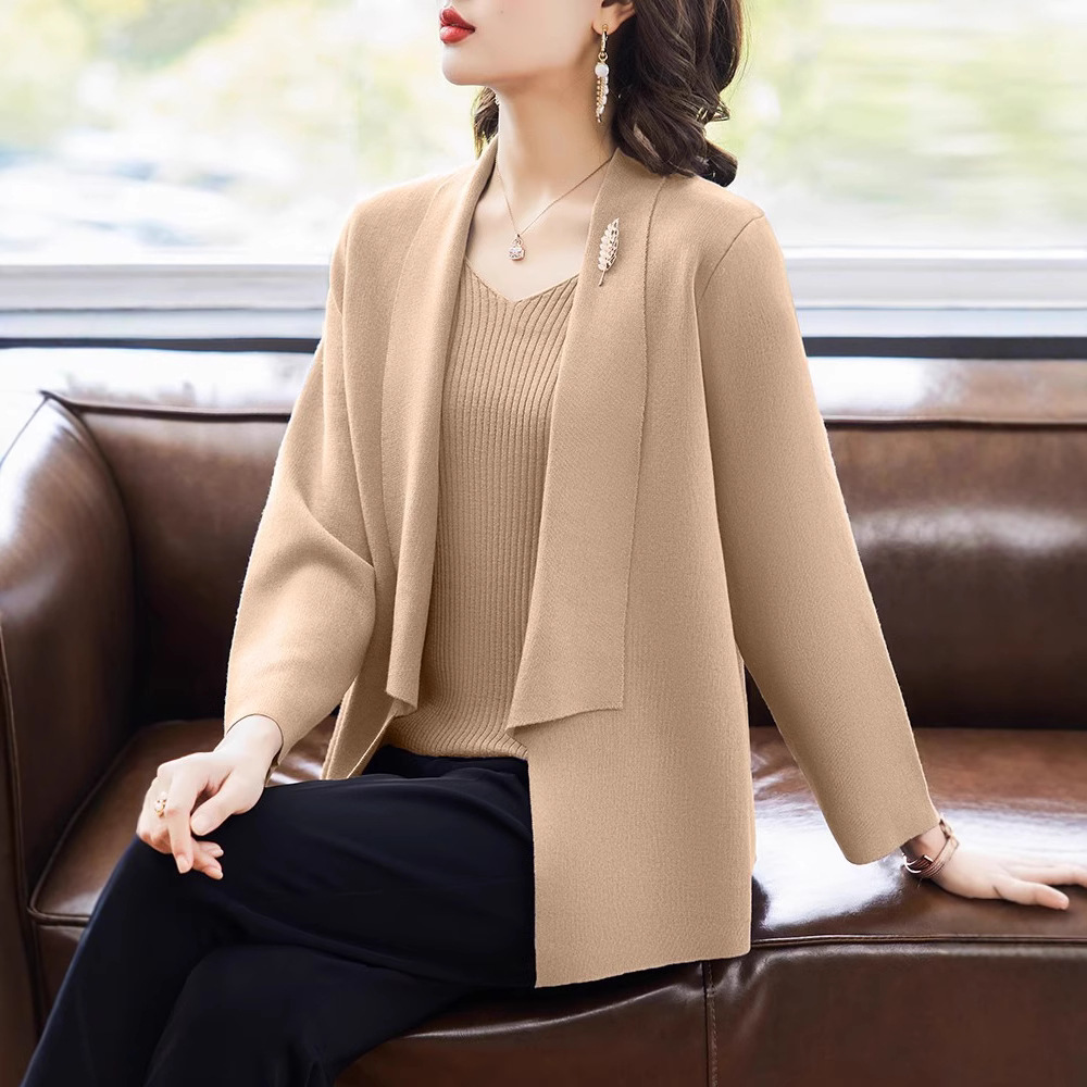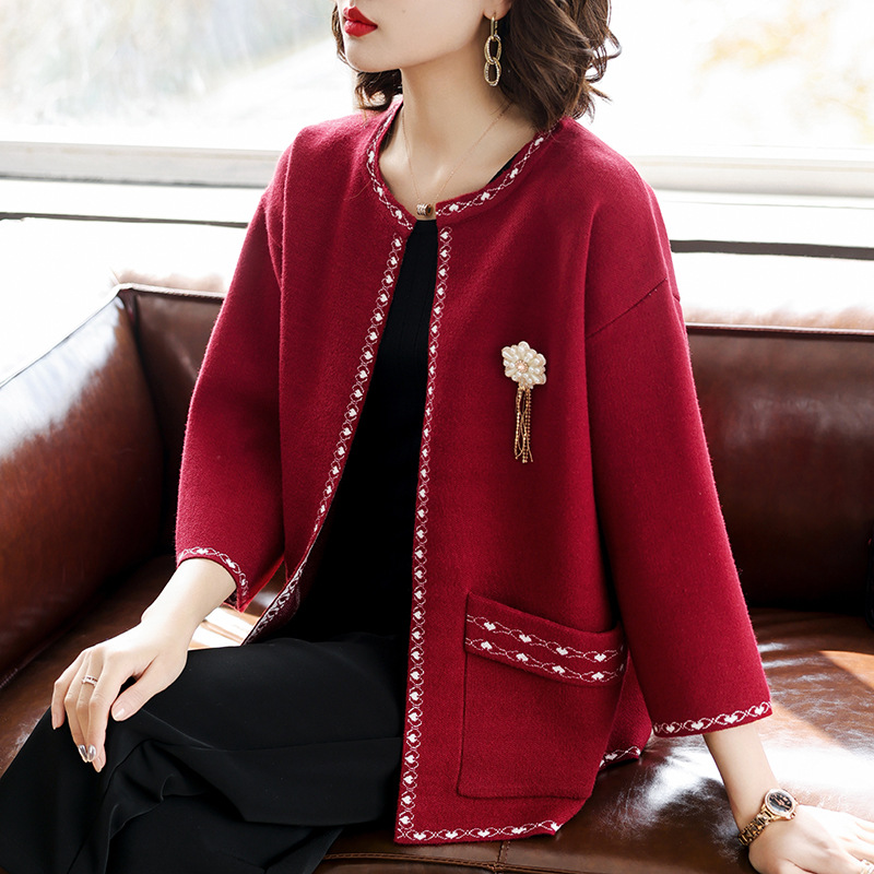 Pakaian musim gugur untuk ibu paruh baya, mantel pendek gaya Barat, pakaian musim gugur pernikahan wanita paruh baya dan lansia, kardigan rajut