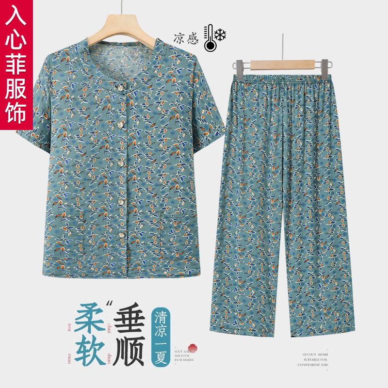 Kaus lengan pendek wanita paruh baya dan lansia, pakaian nenek longgar lengan pendek sutra es terlihat baik