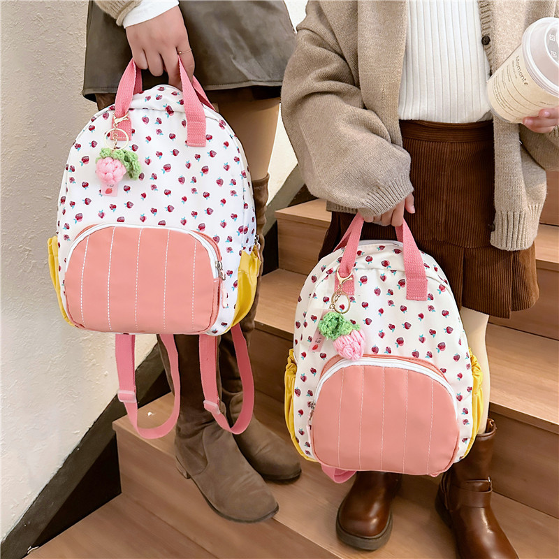Tas punggung ibu orang tua anak, kantung bercetak stroberi untuk anak perempuan TK warna tide