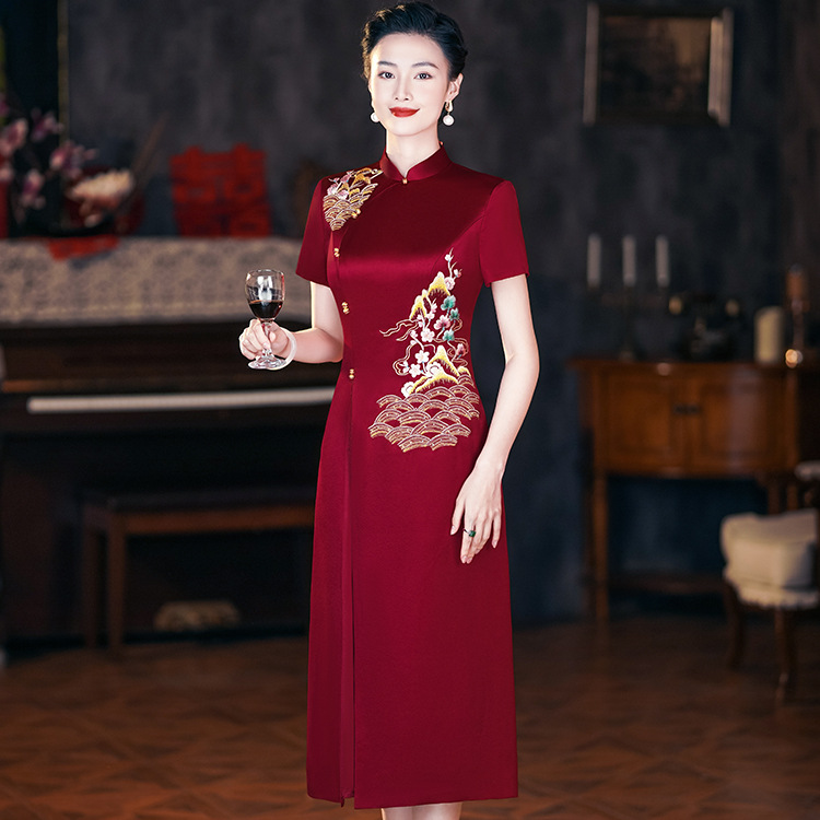 Pakaian Pesta Pernikahan Ibu mertua Kelas Atas Musim Semi dan Musim Panas 2025 Pakaian Cheongsam Ibu Gaya Tiongkok Model Baru Gaun Modifikasi Gaun Model Baru