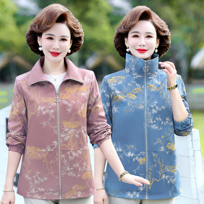 Mantel Nenek musim semi Ibu musim gugur 6070 tahun mantel wanita tua lengan panjang pakaian nenek tipis paruh baya dan orang tua