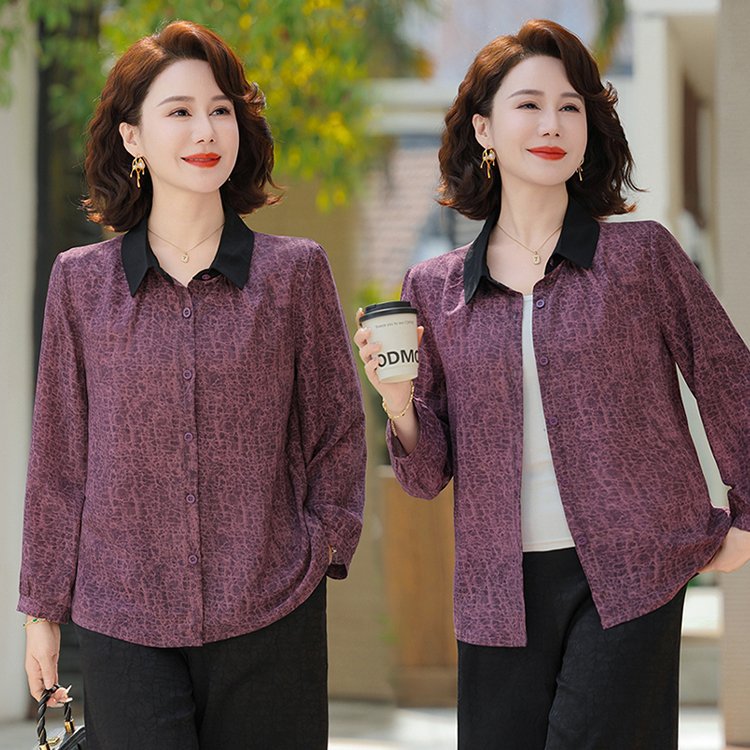 Pakaian Musim Semi Kemeja Lengan Panjang Ibu Modis Model Baru Kardigan Jaket Tipis Kemeja Terlihat Langsing Longgar Santai Orang Setengah Baya