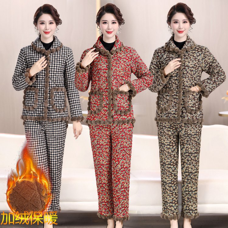 Pakaian musim dingin nenek untuk orang paruh baya dan lansia, pakaian berlapis katun tebal berlapis bulu untuk wanita tua musim gugur dan musim dingin, setelan Tang mantel berlapis katun untuk ibu