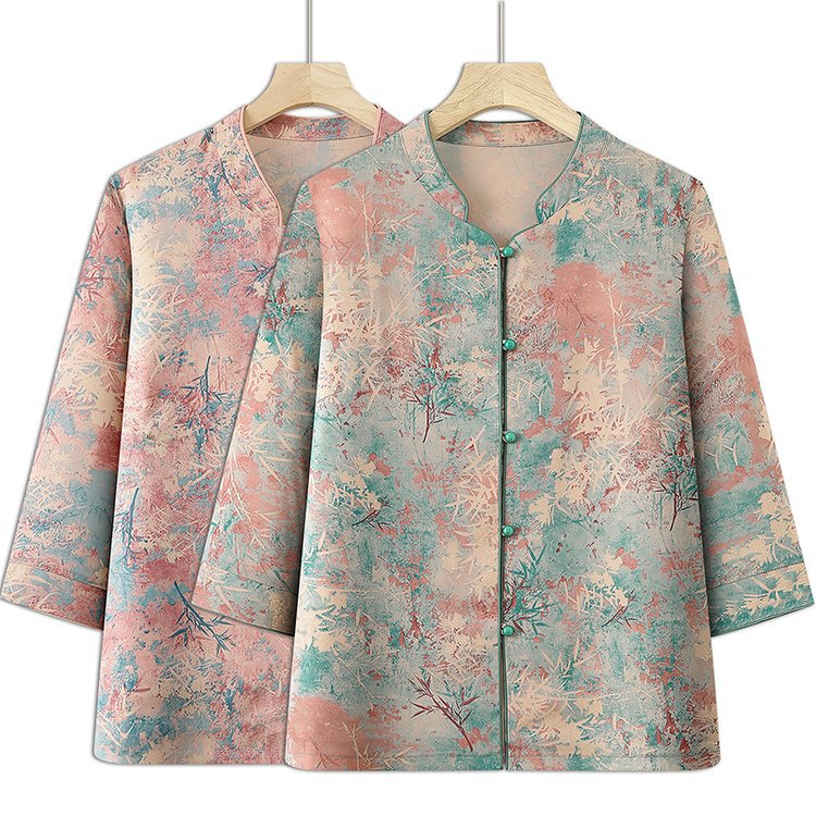 Kemeja Musim Panas Ibu Atasan Pakaian Tang Gaya Tiongkok Gaya Barat Atasan Musim Panas Model Baru Musim Panas 2025 Atasan Musim Panas Wanita Paruh Baya