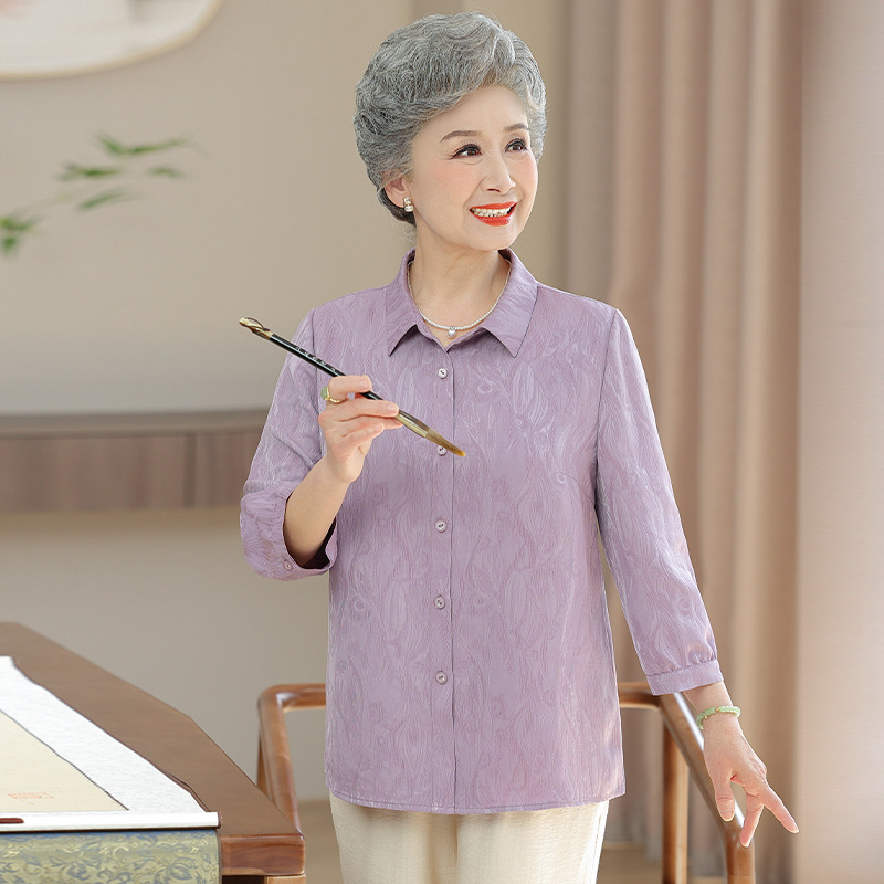 Pakaian Musim Panas Orang Tua Kemeja Nenek Wanita Kemeja Musim Panas Ibu Gaya Barat Ukuran Besar Lengan 3/4 Pakaian Orang Tua