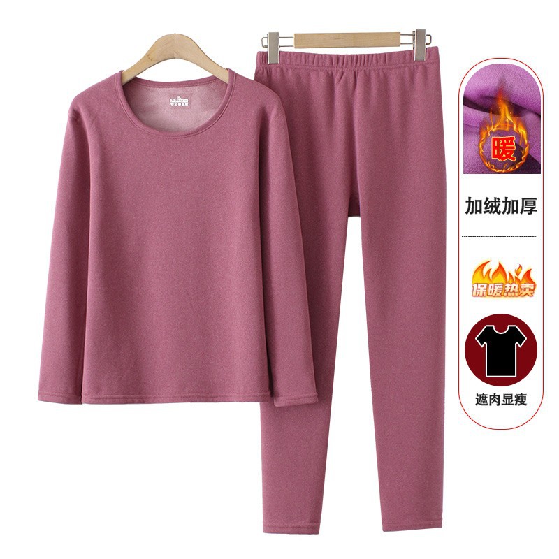 Pakaian panjang ibu paruh baya dan lansia, set dua potong pakaian Dalaman termal tebal berlapis bulu musim gugur dan dingin untuk perempuan