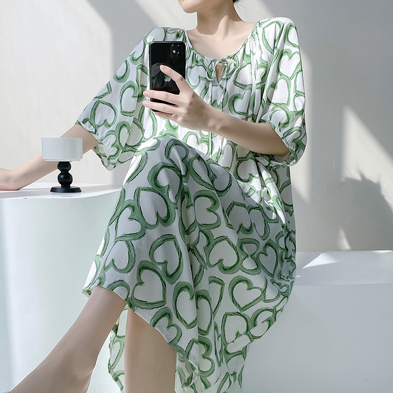 棉绸睡裙女夏季新款大码家居服薄款时尚妈妈睡衣短袖小碎花连衣裙