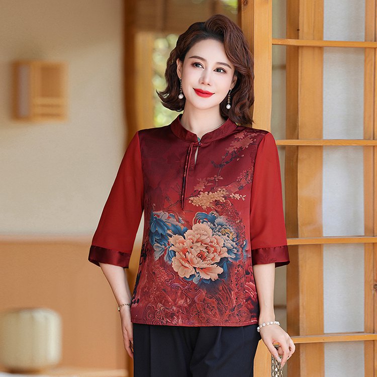 Pakaian Musim Panas Ibu Artistik Longgar Retro Atasan Lengan 3/4 Model Baru Musim Panas Wanita Kaos Wanita High-end Bahan Katun Ukuran Besar