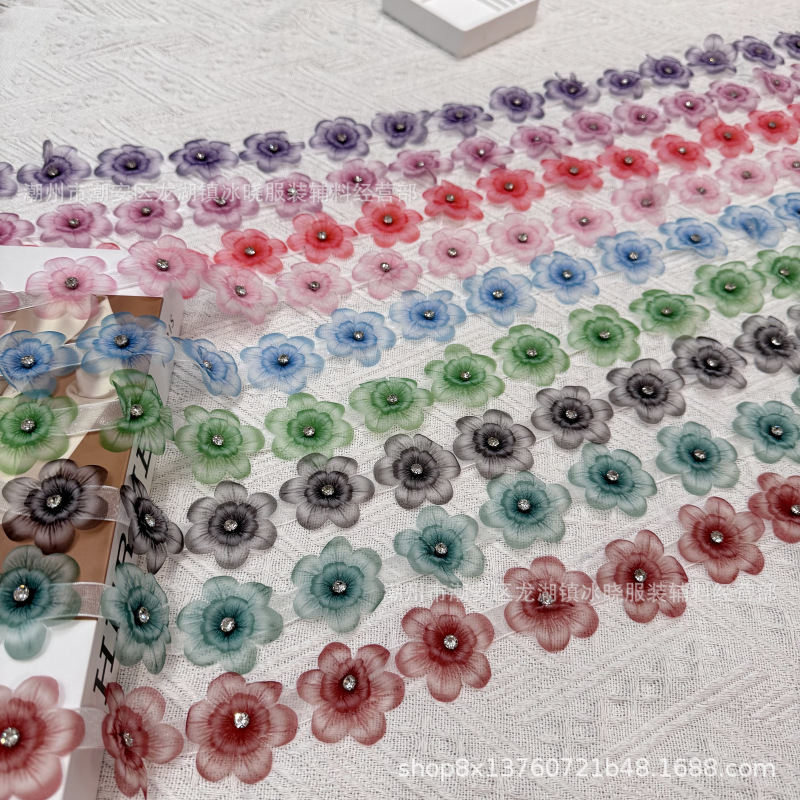 渐变喷染定型双层山茶花钉钻花朵 立体花边diy女装礼服鞋帽等配饰