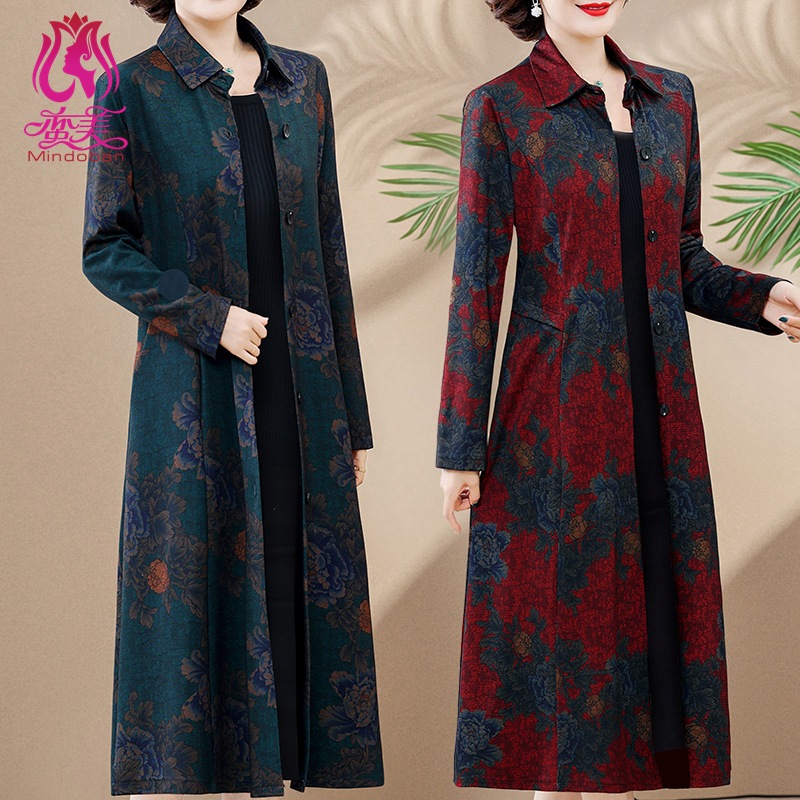 Jas hujan panjang sedang untuk ibu paruh baya, model baru musim gugur dan musim dingin 2025, pakaian luar modis untuk wanita paruh baya dan lanjut usia, ringan dan dewasa.