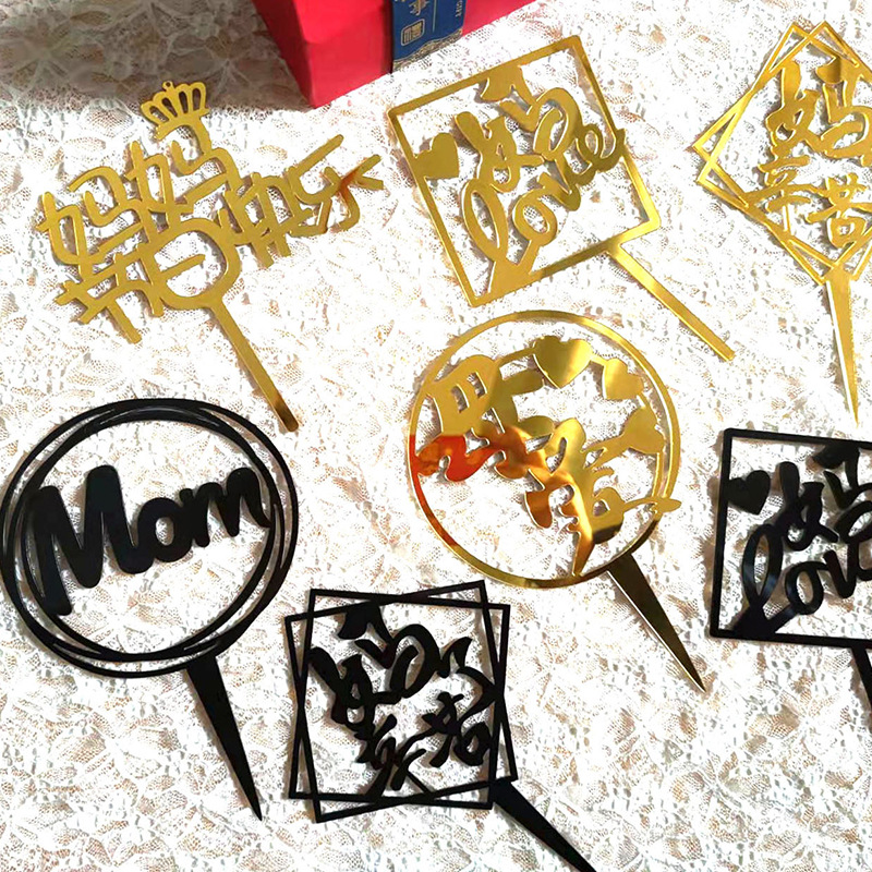 厂家直供亚克力蛋糕装饰母亲节 女神节蛋糕插牌 生日快乐蛋糕插牌