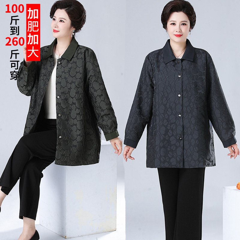 Jaket Angin Musim Gugur Ibu Gemuk Jaket Wanita Lebar Ukuran Besar Baju Atasan Wanita Model Baru Bisa Dipakai untuk Rambut Pengganti 200Kg