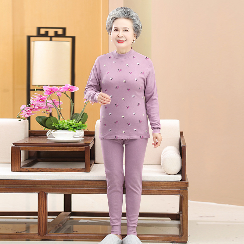 Pakaian musim gugur paruh baya dan lansia, setelan celana panjang katun wanita musim semi dan musim gugur, pakaian dalam hangat untuk orang tua