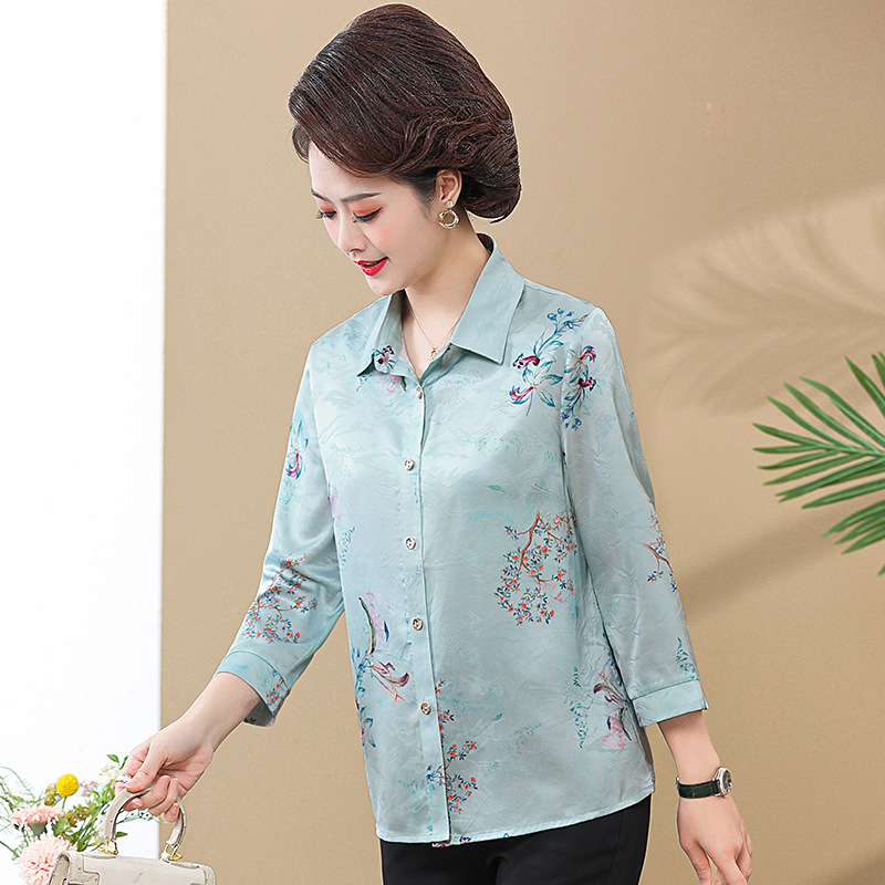 Ibu musim semi kemeja sifon modis kemeja kerah wanita paruh baya dan orang tua 40 tahun 50 temperamen lebih muda