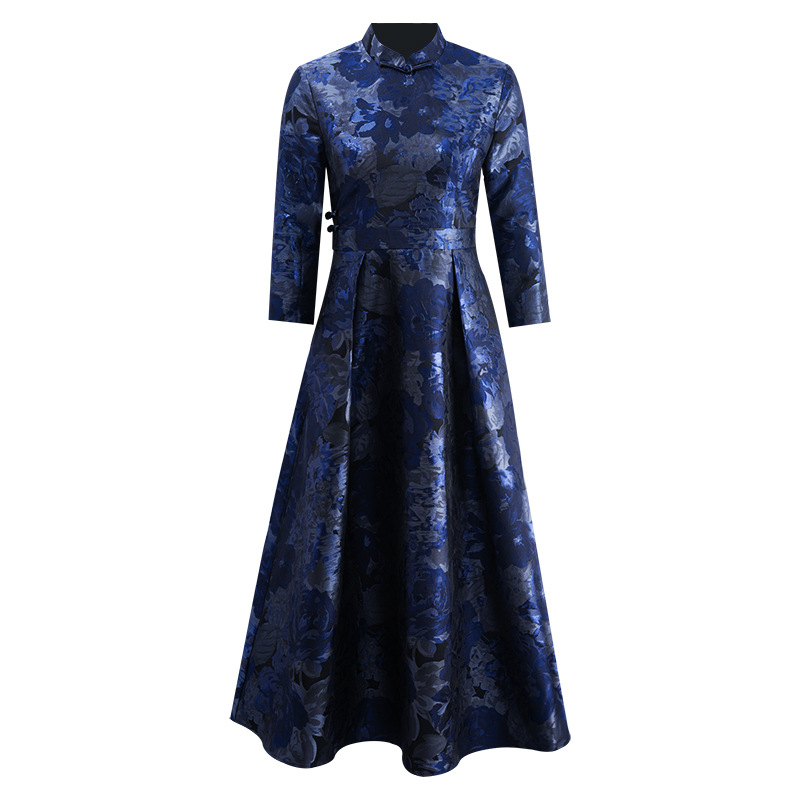 Rok Cheongsam Gaya Tiongkok Gaun Ibu Retro Jacquard Model Baru Tahun 2024 Musim Gugur 24376