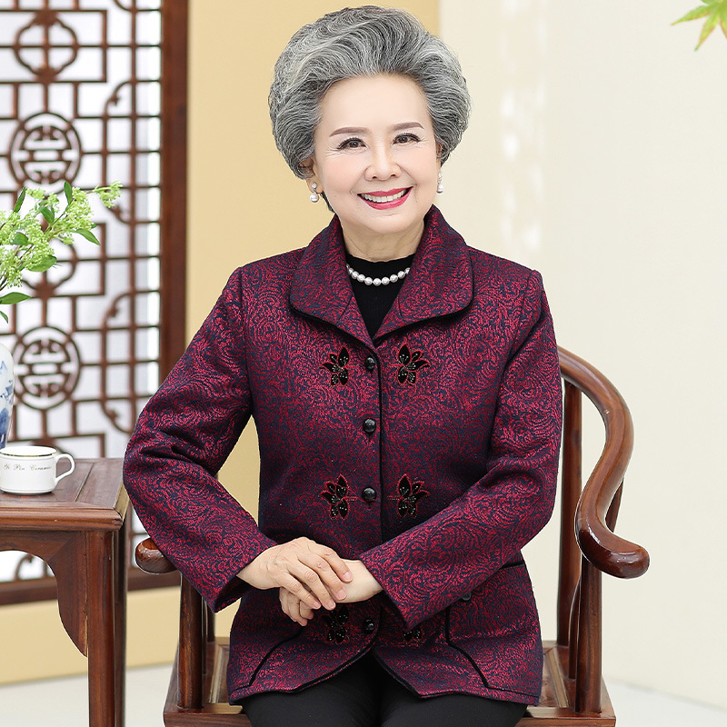 Pakaian musim semi nenek mantel tipis untuk wanita paruh baya dan lansia setelan ibu Musim Semi dan musim gugur mantel untuk pakaian tua 80 tahun 70