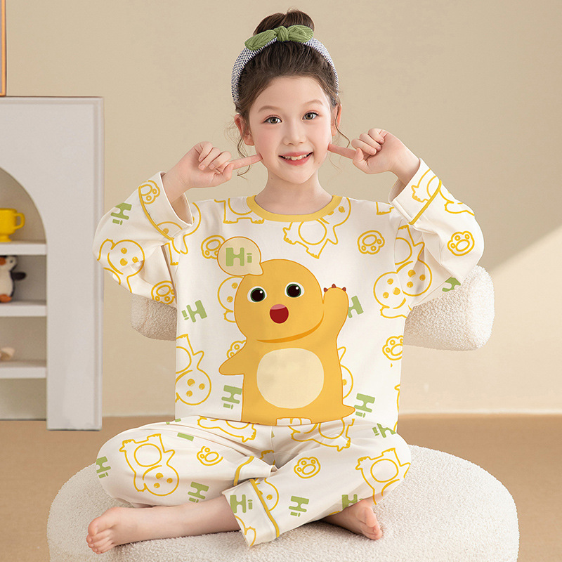 女童睡衣春秋款纯棉长袖圆领2025新款儿童秋季薄款女孩初中生套装
