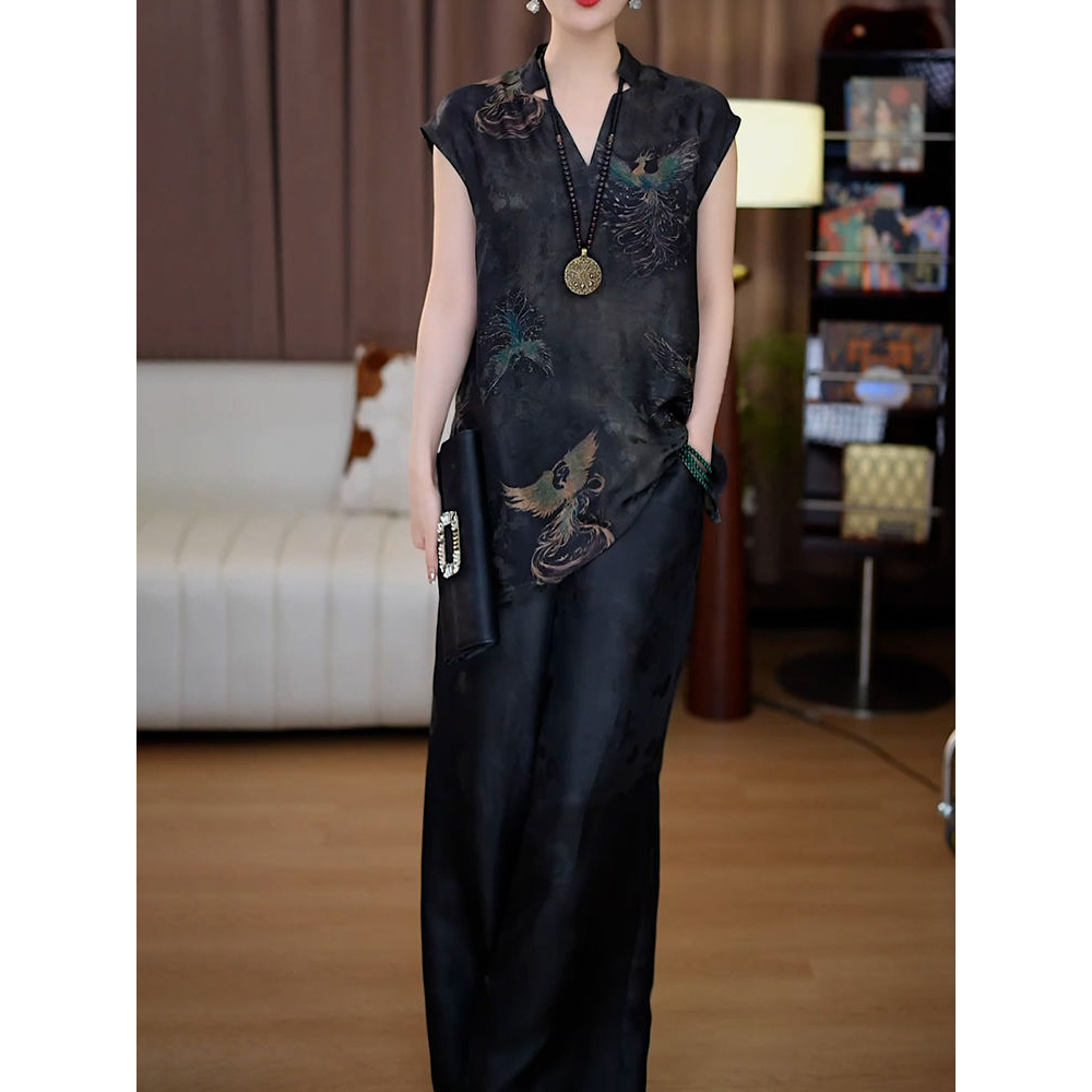 复古国风套装夏季新款时尚妈妈气质减龄显瘦上衣+长裤两件套8290