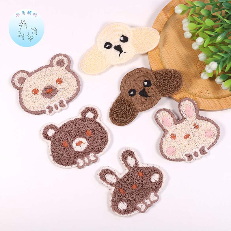 跨境新款服装帽子装饰辅料刺绣补丁贴可爱创意狗熊兔卡通刺绣布贴