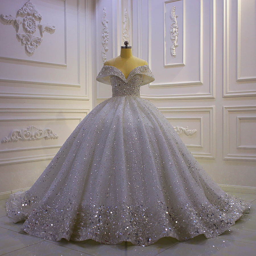 Gaun pengantin utama Amazon perdagangan luar negeri 2024 baru ukuran plus bahu terbuka berpayet gaya istana renda gaun pernikahan seksi industri berat musim panas