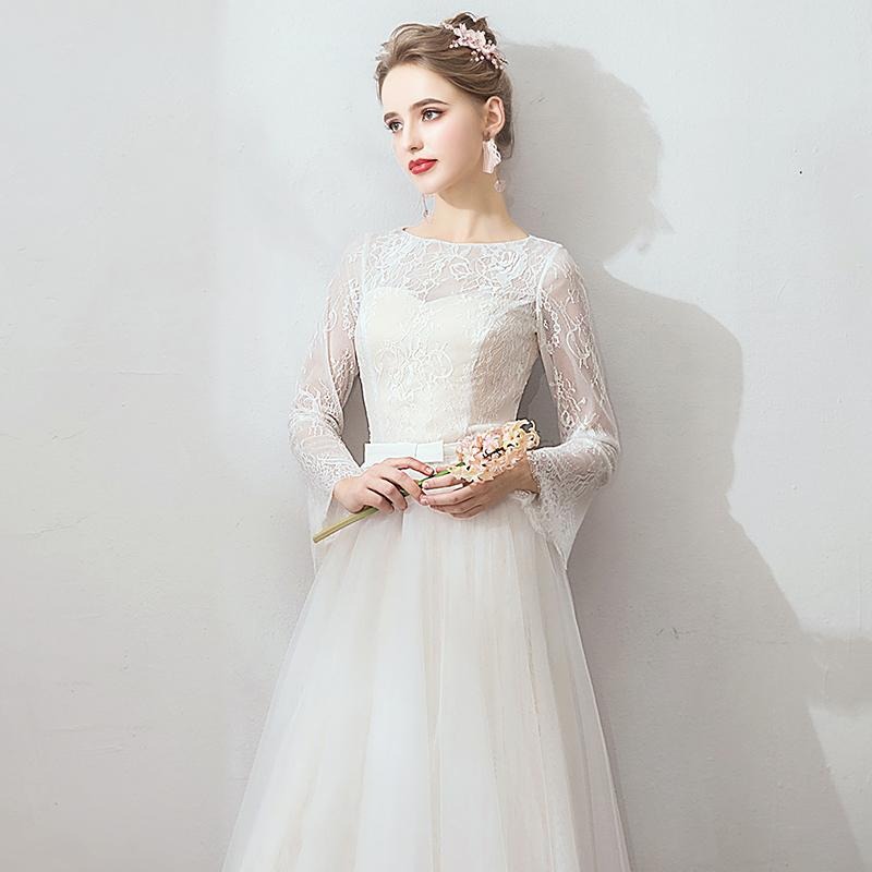 Gaun pernikahan renda putih dewasa lengan panjang setengah pinggang panjang gaun pernikahan roti bakar Gaun malam pasokan pabrik Gaun