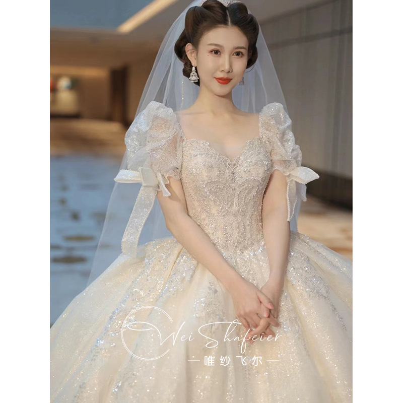 Gaun pernikahan benang utama musim panas pengantin baru 2023 gaun kecil kelas atas Mewah industri berat ekor besar lengan tebal