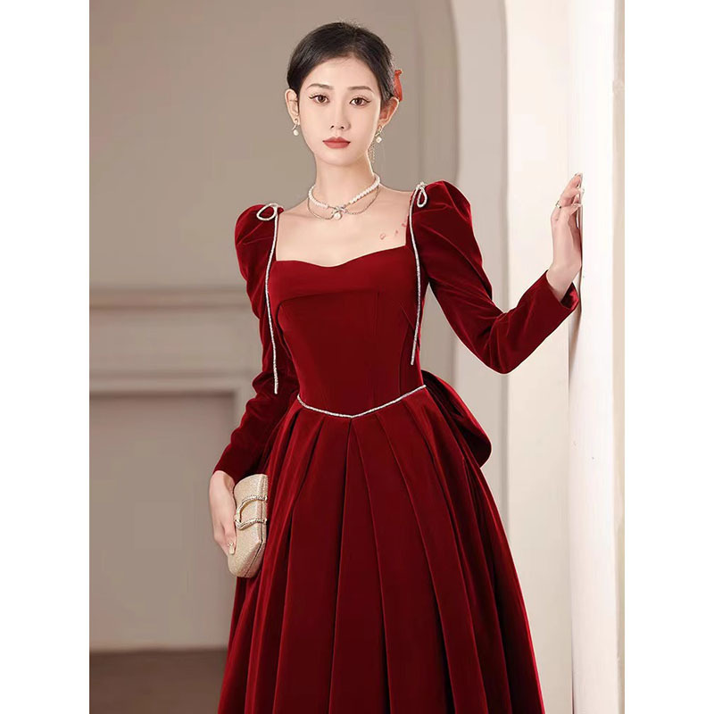 Gaun pernikahan ringan Perancis satin pendek busur host upacara kinerja dewasa pendaftaran sertifikat gaun kecil keluar benang