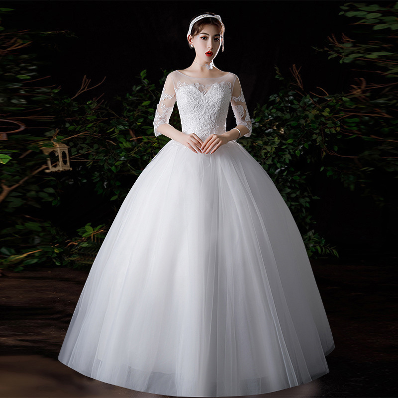 Gaun pernikahan musim semi dan musim gugur, pelangsing lemak lengan setengah renda ukuran besar sederhana untuk lantai off-shoulder 2024