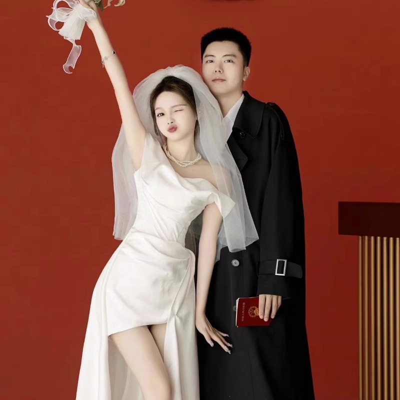Gaun Pengantin Ringan Prancis Pita Satin Sederhana Niche Kelas Atas Tema Studio Foto Selamat Datang di luar rumah Benang Ekor