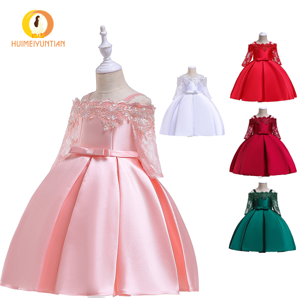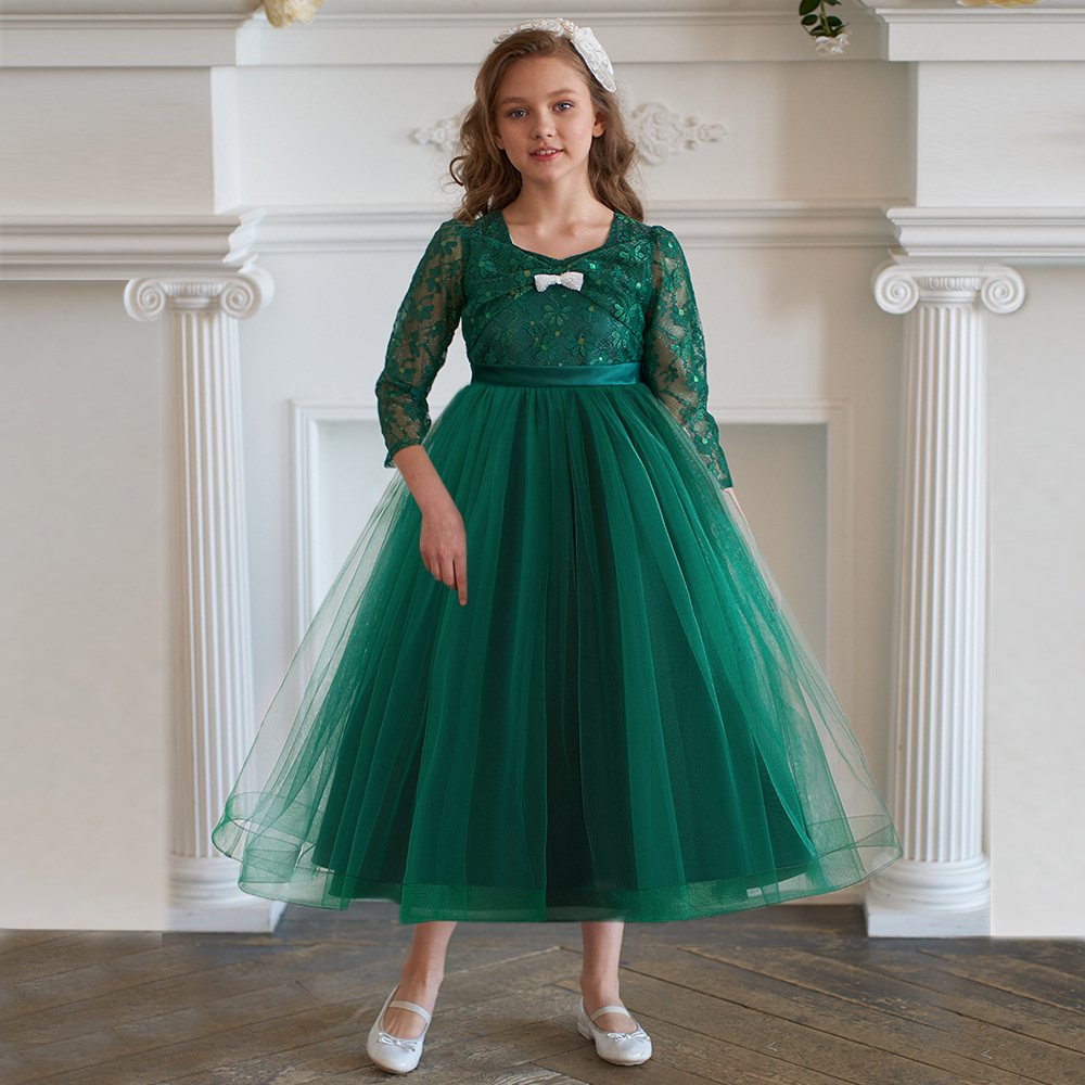 Gaun Princess renda anak-anak, gaun pernikahan renda pita panjang lengan panjang dan besar
