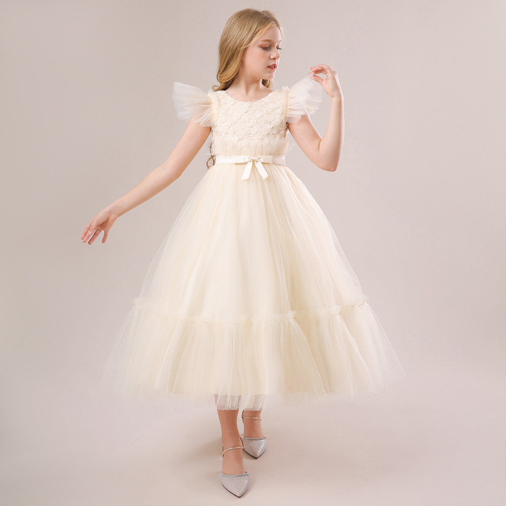 Gaun Princess anak perempuan, Gaun Princess lengan jaring, Gaun panjang pernikahan model Amazon 2024