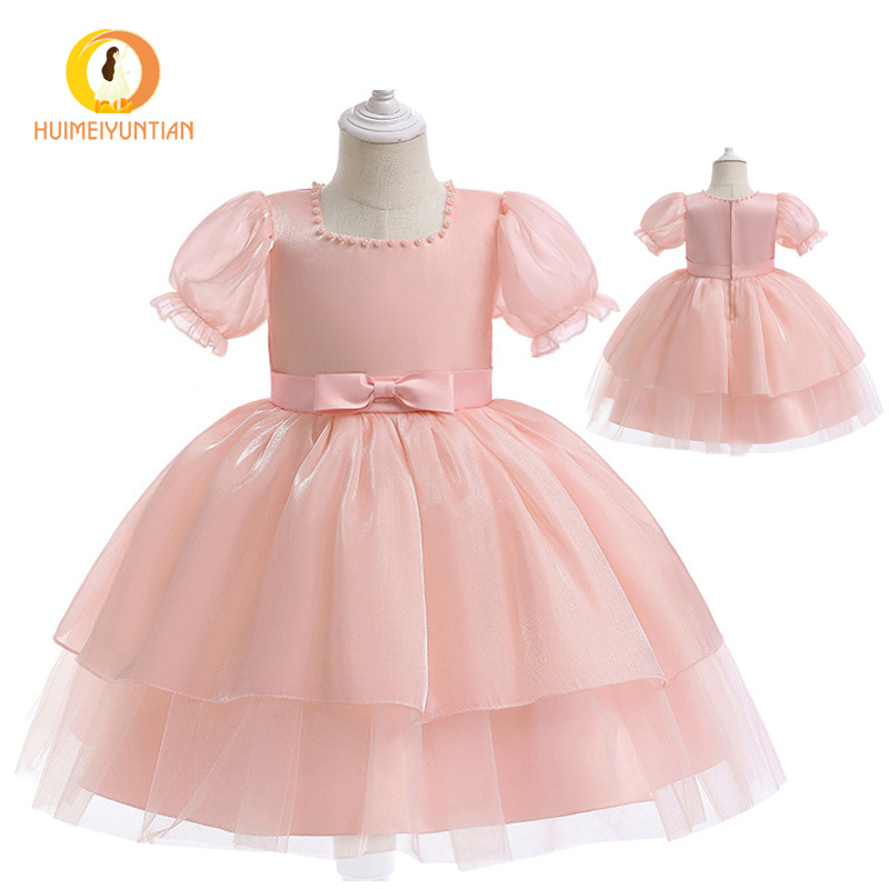 Gaun rok putri anak perempuan, pakaian pernikahan kelas atas gelembung host piano mengembang benang musim panas