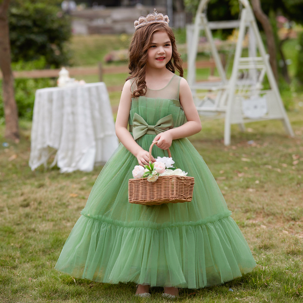 2023 perdagangan luar negeri anak perempuan gaun pernikahan busur mesh pettiskirt kinerja gaun pakaian anak-anak gaun anak-anak