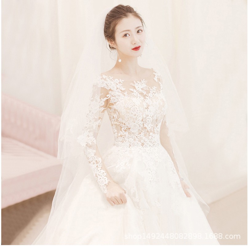 Gaun pernikahan Suzhou Huqiu, gaun pernikahan sederhana ukuran besar, pelangsing lengan panjang bahu terbuka, gaun pengantin baru 2024