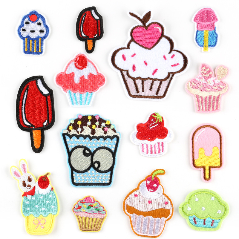 Stiker bordir hamburger kentang goreng Cherry Patch dalam stok batch kecil aksesoris pakaian lintas batas pasokan stiker kain
