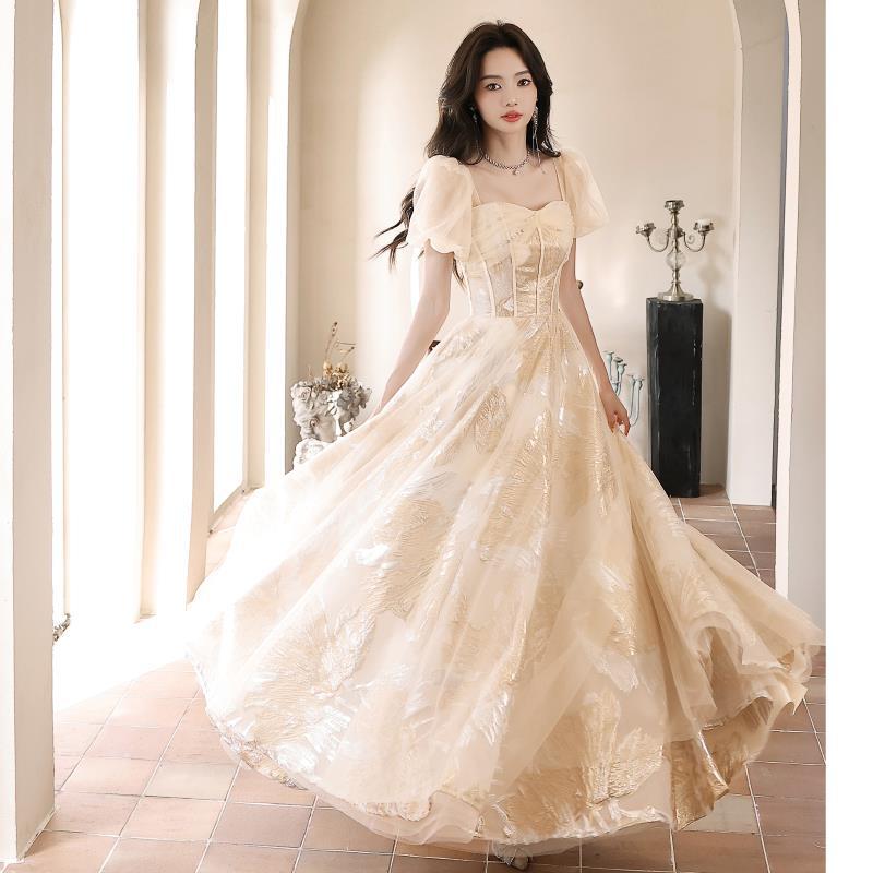 Gaun malam Perancis gaya istana mewah cahaya niche super peri benang ringan sampanye gaun kasa seni vokal gaun ujian dopamin