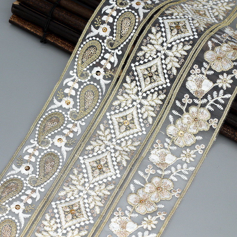 新品欧根纱刺绣花边服装手工DIY衣领袖口鞋材箱包装饰辅料批发