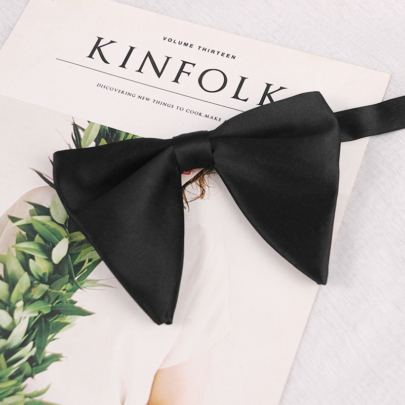 新款纯色黑色男士涤纶丝牛角大领花商务百搭结婚西服牛角领结批发