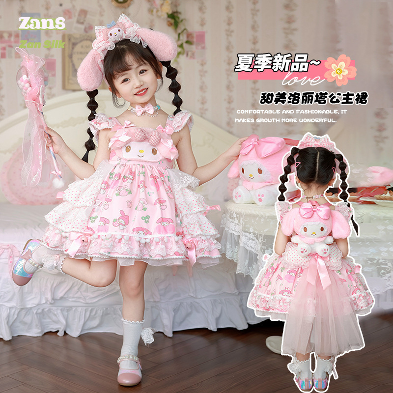 Gaun Lolita Kartun Anak-Anak Model Baru Musim Panas Rok Putri Selempang Anak Perempuan Gaun Ulang Tahun