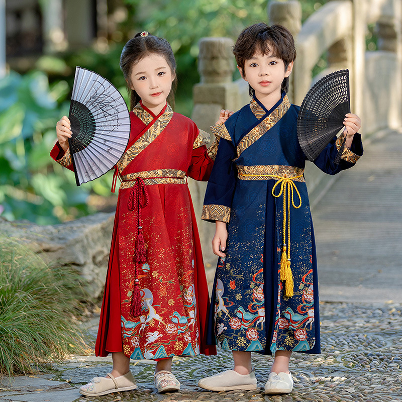 汉服男女童国风唐装春秋2024新款儿童长袍礼服宝宝新中式演出衣服