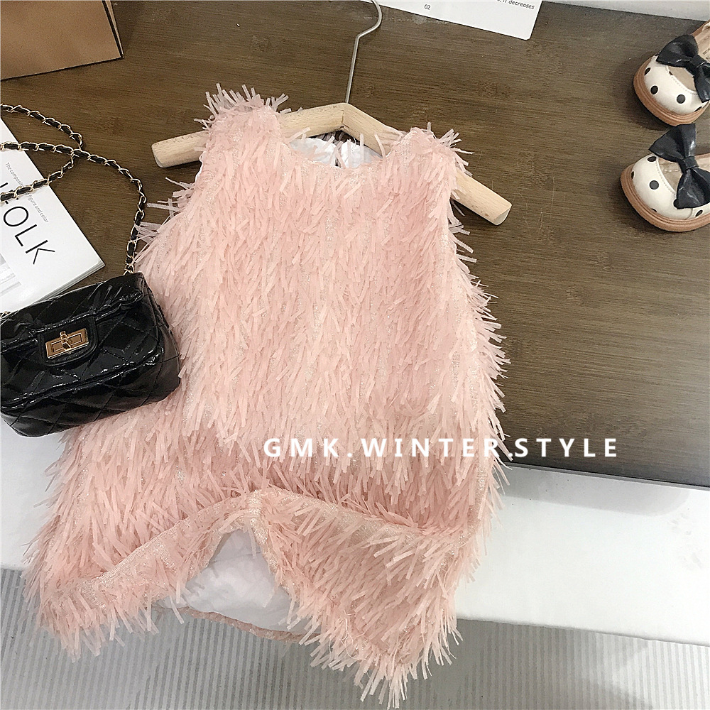 Pakaian Anak Model Korea Model Baru Musim Panas Rok Terusan Tanpa Lengan Rumbai Gaya Chanbai Anak Perempuan Gaun Ulang Tahun Pakaian Perdagangan Luar Negeri