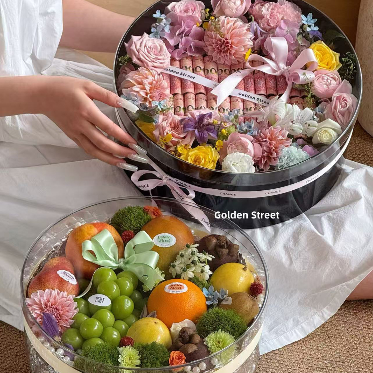 pet水果花盒 透明亚克力圆形手提盒节日鲜花包装礼盒花店礼品资材