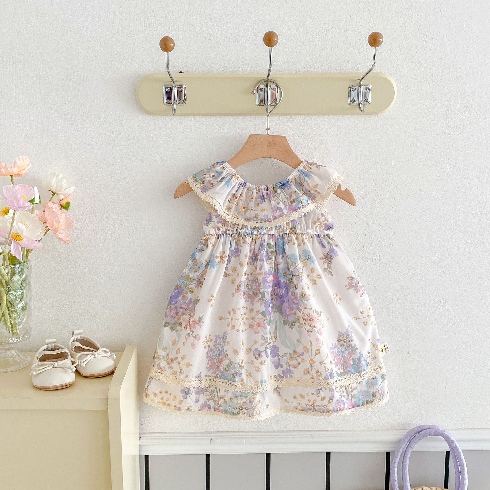 Gaun Anak Perempuan Pakaian Musim Panas Rok Tanpa Lengan Manis Model Baru Gaun Anak-anak Gaun Bunga Kecil Rok Liburan Gadis Kecil